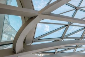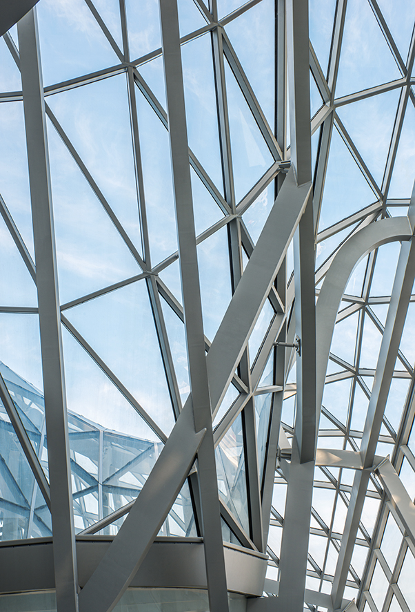 Das Krystal-Gebäude besteht aus einer primären Tragkonstruktion und einer sekundären Konstruktion, die mit EPDM-Profilen und Glasfüllungen bestückt ist. Das Gesamtgewicht der hergestellten Konstruktion beträgt 600 Tonnen.