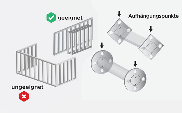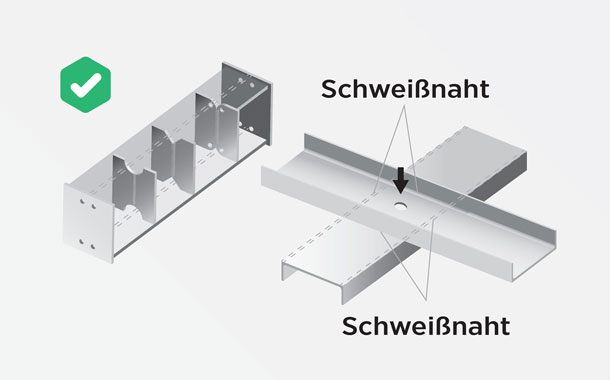 Alle für die Verzinkung vorgesehenen Konstruktionen sollten so ausgeführt sein, dass sie gut in ein Zinkbad eingehängt und eingetaucht werden können, weshalb sie über geeignete technologische Öffnungen verfügen müssen. Schauen sie sich die nachfolgenden Beispiele an, um zu erfahren, welche Konstruktionen für die Feuerverzinkung geeignet bzw. ungeeignet sind und werfen Sie einen Blick auf unsere Tipps, worauf Sie bei Entwurf und Änderung von Konstruktionen achten sollten.