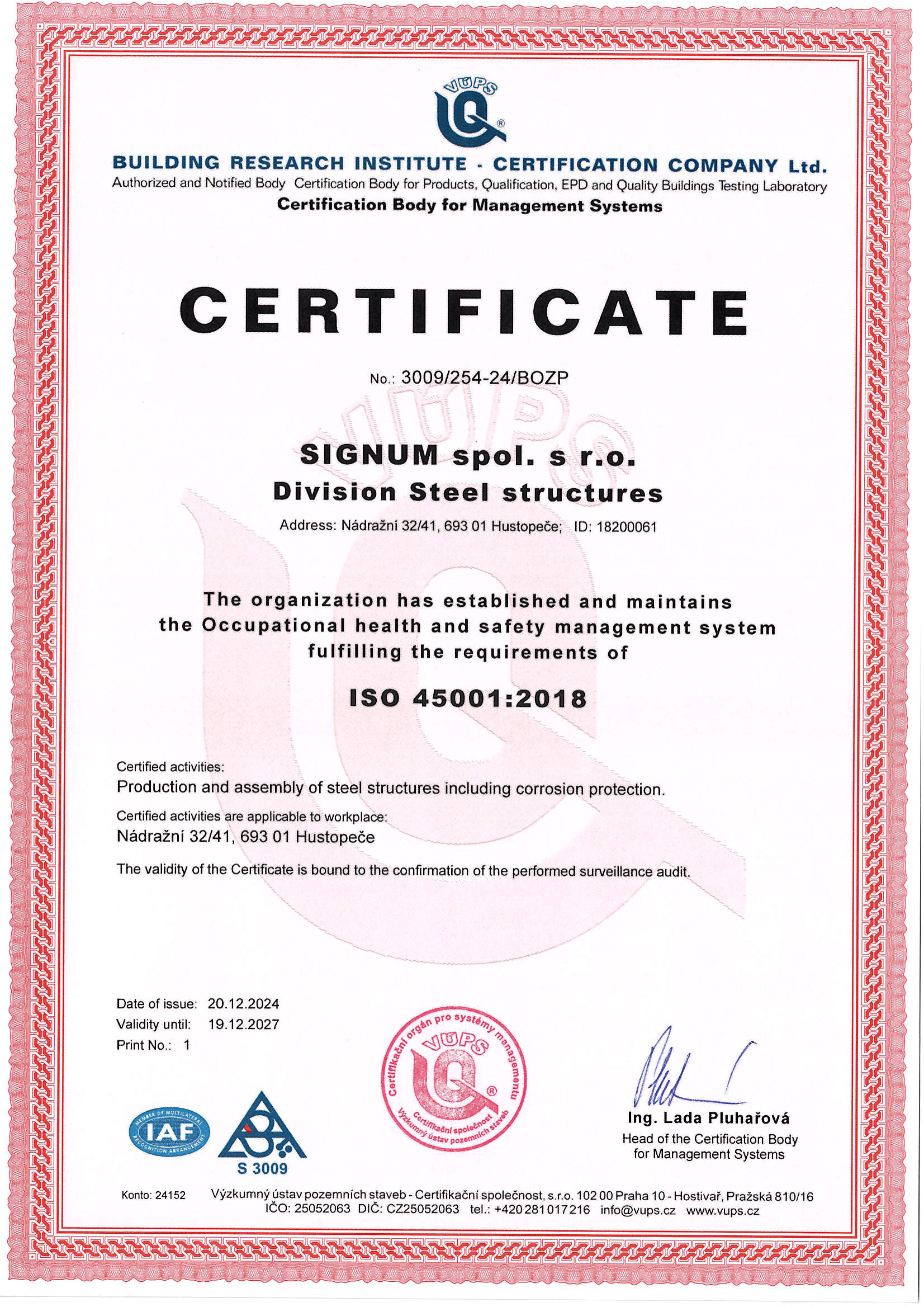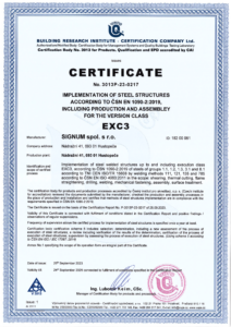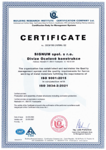 Certificate ISO 9001:2015 in conjunction with ISO 3834-2:2021
