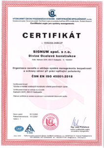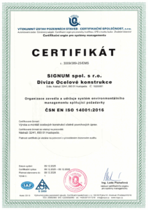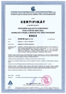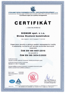 Certifikát ČSN EN ISO 9001:2016 ve spojení ČSN EN ISO 3834-2:2022