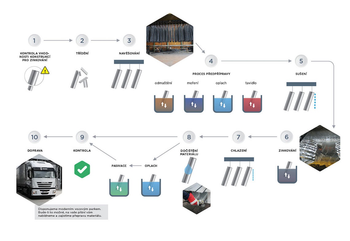 Po ponoření do zinkové lázně se na povrchu materiálu vytvoří intermetalická fáze železa a zinku.