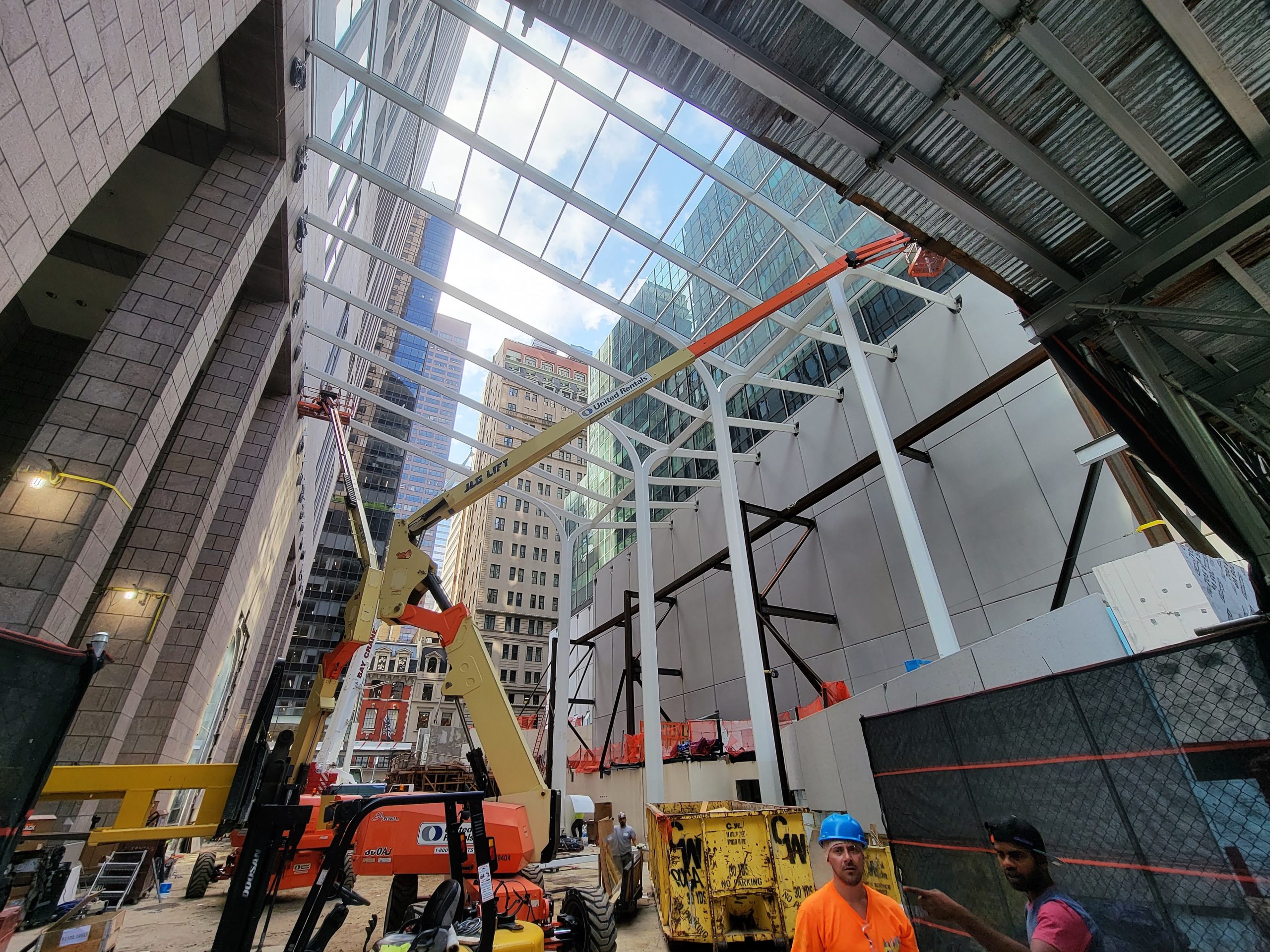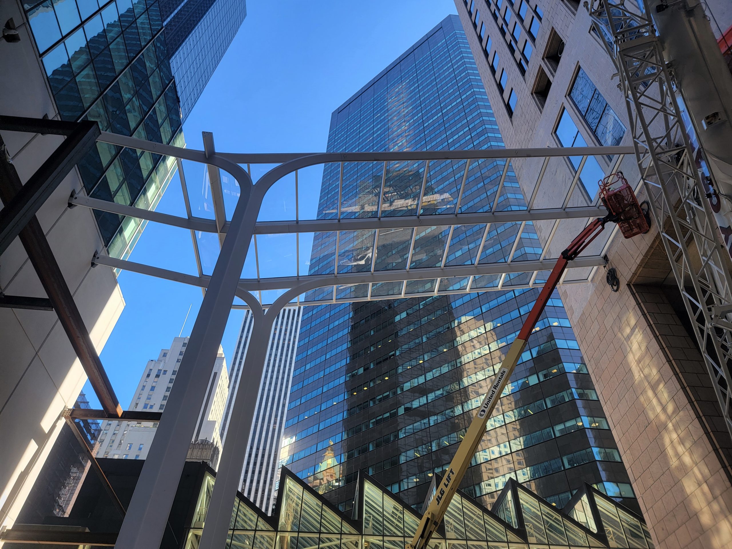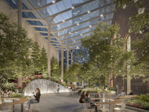 Ocelová konstrukce zastřešení veřejného prostoru 550 Madison Garden v New Yorku