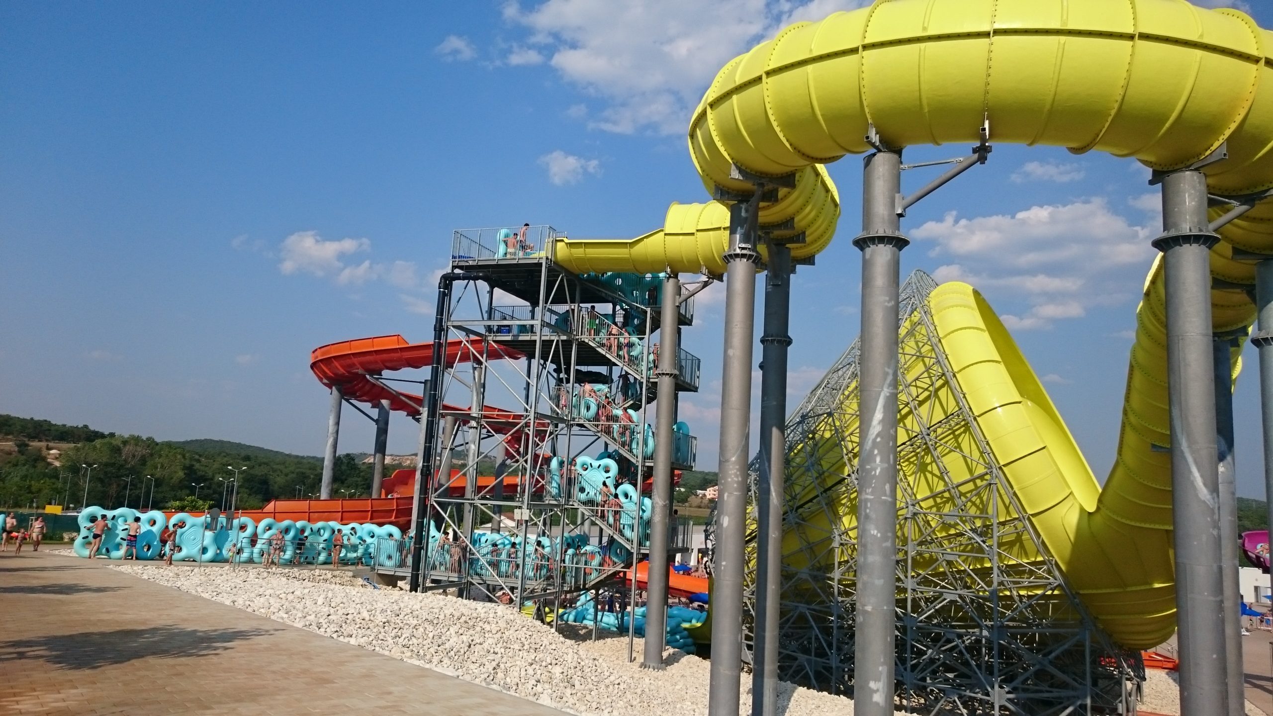 Naše mohutné konstrukce nesou pestrobarevnou spleť vodních atrakcí největšího chorvatského akvaparku.
