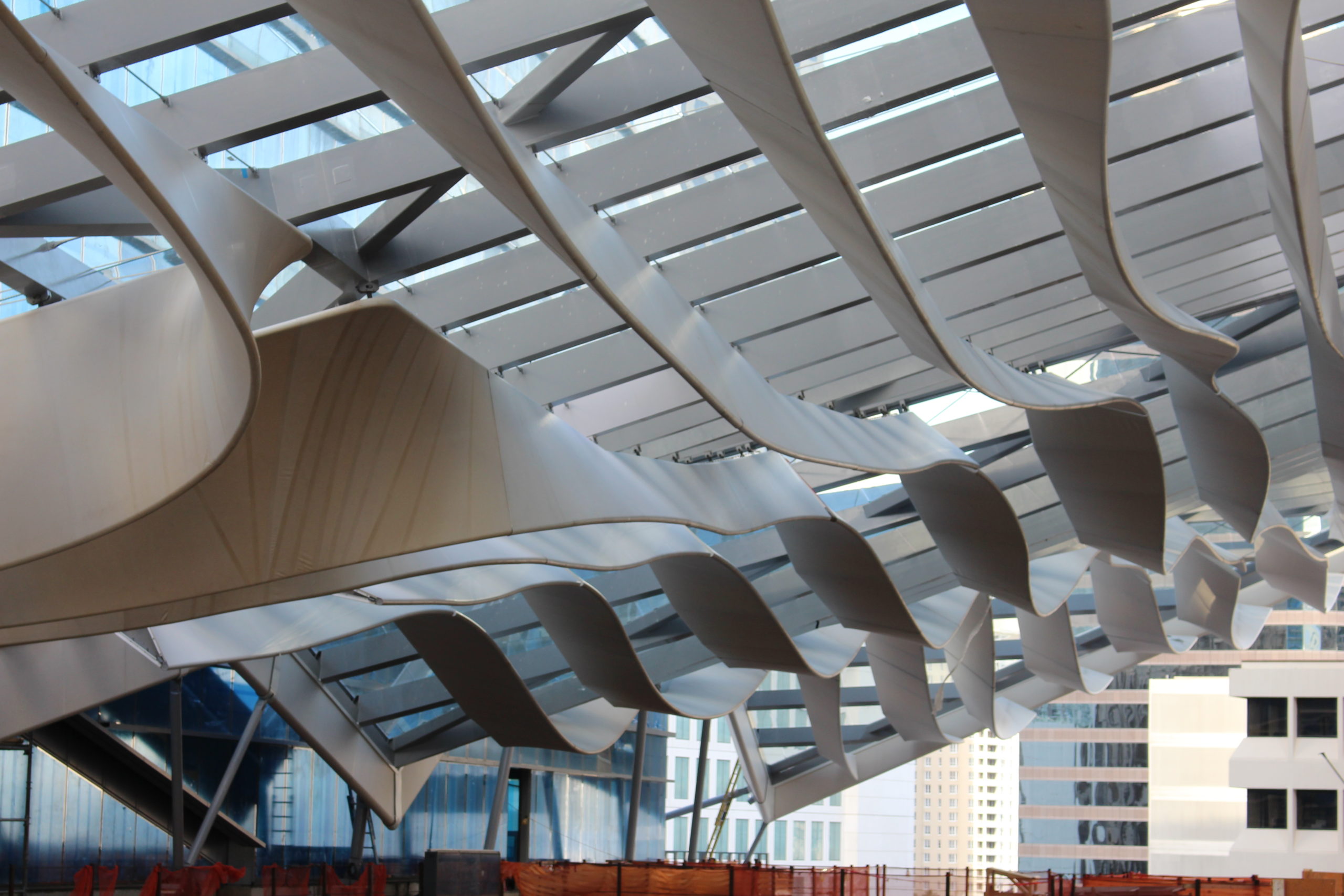 Povrch jedotlivých lamel je dynamická řada šikmých ploch umístěných v proměnlivých úhlech. Poloha každé části lamely je výsledkem důmyslné analýzy sklonu slunečních paprsků a proudění větrů ze zálivu. Ocelová konstrukce je celá bílá a působí velice elegantním dojmem. Horní prosklená střecha konstrukce poskytuje ochranu před deštěm, a také působí jako částečný filtr proti slunečnímu záření.
