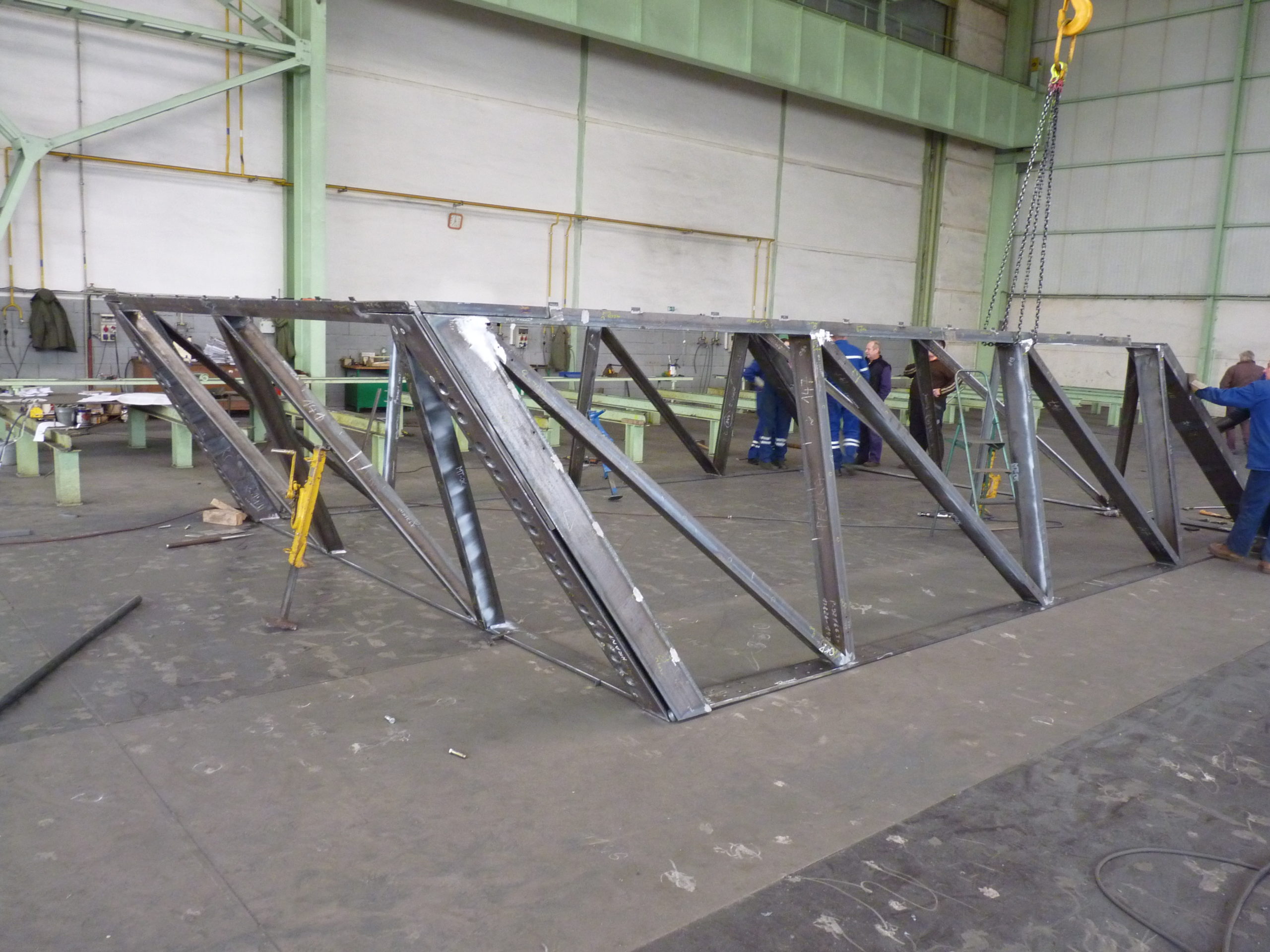 Konstrukční řešení Polaris Hall je tvořeno 18ti patry příhradových nosníků, kde jsou jednotlivé pruty tvořeny svařovaným T-profilem o proměnlivé výšce stojiny. Jednotlivá patra jsou k sobě připojena prošroubováním skrz vrtání ve spodním a horním páse jednotlivých pater. Nároží jsou tvořena nosníky trojúhelníkového průřezu. Pro zajištění přesnosti geometricky náročné konstrukce byla součástí výroby nezbytná dílenská předmontáž.